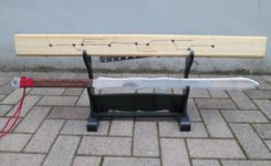 ゴテゴテに改造した直刀です。 波紋に夜光塗料が塗ってあり光を当てて暗いところに持っていくと発光しま…